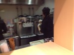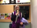 Rob and Fred took the train on some secret mission, Lin and I went to a bookstore to find a calendar for Fred and some groceries, I had an ice cream cone of green tea ice cream with a bit of sweet bean relish on the side and two shiratama on the side (unsweet, wheat-based, chewy texture). The ice cream itself is not very sweet. A nice treat!