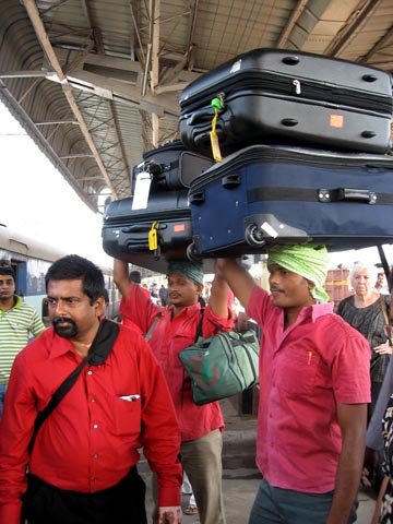 One of them was in Abhi’s hometown of Rajahmundry (a “small town” of 800,000). We took an overnight train (an adventure in itself). The train stopped for about 5 minutes so we were all lined up in the aisles ready to toss luggage out to his family and friends. We were AMAZED to see how much luggage they could carry!