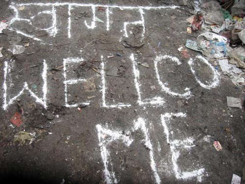 We had been greeted by a half dozen young men who protected us from any harassment or problem. Since it rained the night before our visit, the ground was muddy and slippery. Some of the guys offered a hand to help us through the mud because it had rained the night before.