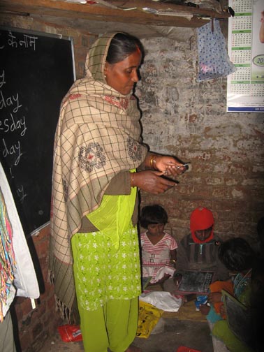 With very few teaching materials, Vivha teaches reading, writing, and numbers in Hindi and English (at least), about days, weeks, seasons—all the basics.