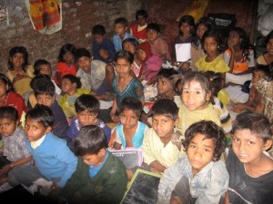 Manoj is one of the waste pickers and an activist. His wife Vivha decided to start a school with no training other than a high school education. She teaches and Manoj assists when he has time. Classes are normally held outside for about 70 children, but it had rained the night before and the ground was muddy. Instead of an open-air school, they used a small one-room building and only about 30 kids could fit inside the classroom.